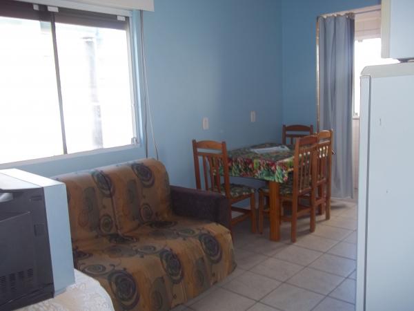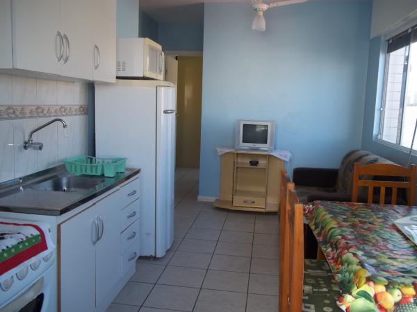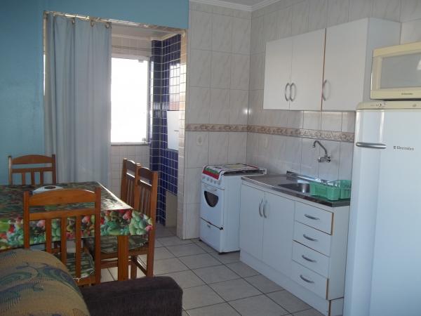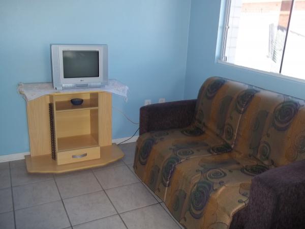 Sala/cozinha com fogão, galadeira, mesa e utensílios de cozinha para 4 pessoas, TV 14", bicama. Área de serviço com tanque e churrasqueira. Acomoda 4 pessoas. WI-FI.