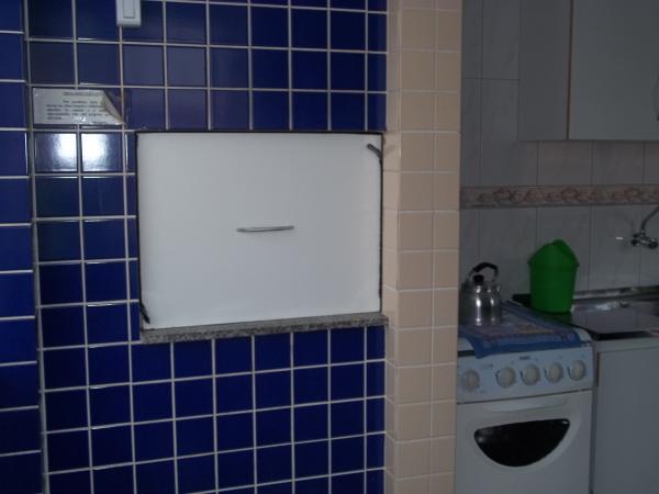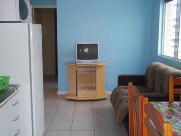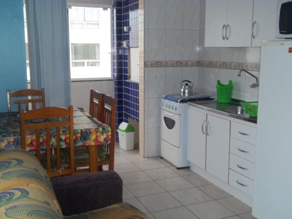 Sala/cozinha com fogão, galadeira, forno microondas, mesa para 4 pessoas, TV 14", bicama. Área de serviço com tanque e churrasqueira.Possui pequena vista para o mar.Acomoda 4 pessoas. WI-FI.