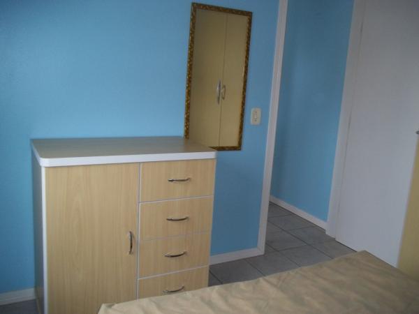 Apartamento no 5º andar. Dormitório com cama de casal, roupeiro e cômoda, orientação solar norte e leste.