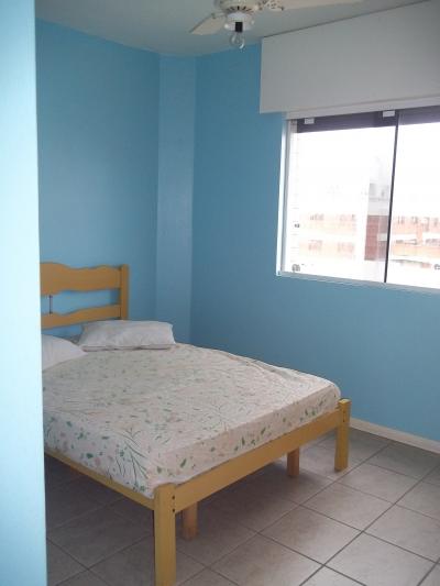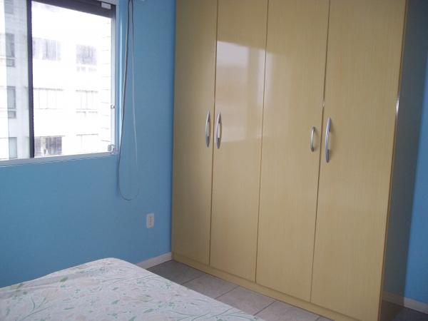 Apartamento no 5º andar. Dormitório com cama de casal e roupeiro, orientação solar leste.