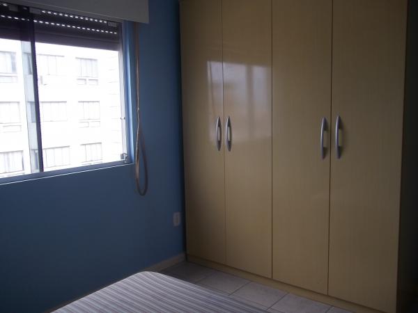 Apartamento no 7º andar. Dormitório com cama de casal e roupeiro, orientação solar leste.