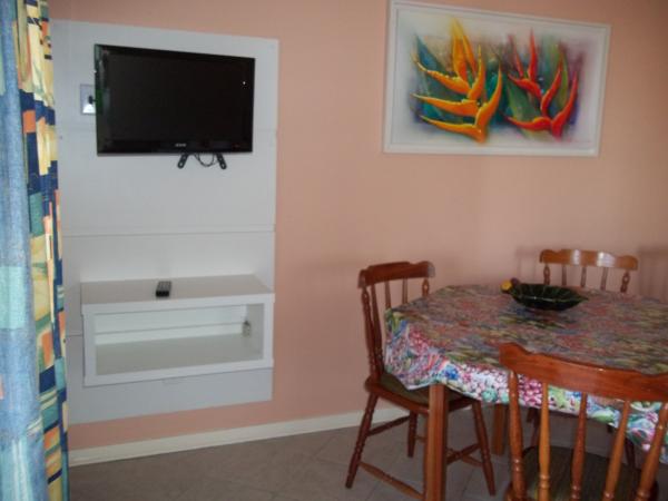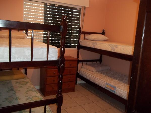 Suíte com cama de casal, roupeiro e ventilador de teto, amplos banheiros (dois incluíndo o da suíte),quarto com dois beliches, cômoda, roupeiro e ventilador de teto, sala com sofás, TV LED 24', mesa de jantar para 6 pessoas, cozinha sob medida com geladeira, fogão, forno microondas, ampla sacada de frente para a Av. Rudá, vista para o mar com mesa de jardim, churrasqueira, espetos, tanque e máquina de lavar roupas 5 Kg. Orientação solar leste (quartos, banheiros e cozinha) sala e sacada sul. WI-FI.